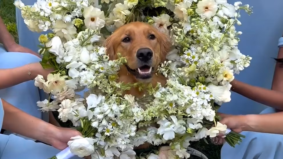 10. Couple taps beloved dogs as flower pup and ring bearer for wedding